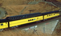 Another experimental paint job from 1980 is modeled by SD40R 7342 (and SP caboose #1 in the background). This original version (SD45R 7399 was the only other unit to be so painted) was special in that the hood lettering was red on this side and white on the other and the "bloody nose" was solid on one side and had wings on the other. |