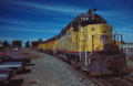 SP SDP45 3203 leads Harriman cars in their steamy glory on train #48. San Francisco, March 29, 1982. |