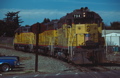 SP SDP45 3201 and GP9E 3191 lead #50, a five car train, out of San Francisco. March 29, 1982. |