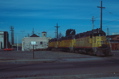 SP GP40P-2 3199 turns the corner at 7th and Townsend in San Francisco with train #42 but the clouds got there first. |
