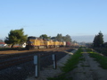 An ethanol train with 5276-5260-2560-4500 in the lead and 6216 as a DPU race through Tremont, CA. |