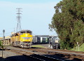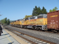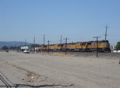 An eastbound at 85th Avenue in East Oakland is headed for San Jose with SD40R 7352, SD45T-2 9323, and UP SD40-2 3766. |