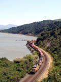 DPU 4020-7429 idle across the Benicia Bridge as the UP 1989 heads down the north approach. |