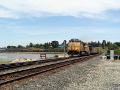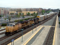 The DPU on UP 6840 West, UP 5539, just comes into view as Amtrak 6 races by on the other main. |