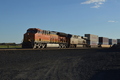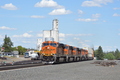 Another empty grain train with 4404-7200-6922-7695 in the lead. Note that 7695 is the Yellow Swoosh engine with its unique BNSF logo. |