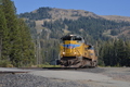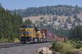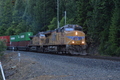A mixed power consist of 6840-3803-5272-1628-5266 and DPU 5539 has a westbound train well under control at Soda Springs. |