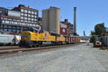 The OAWCY is rolling through Jack London Square with a mixed bag for power: SD40R 7360, U33C 8703, and GP9E 3778. |