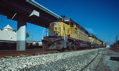 Broadside of SP GP40X 7200 (complete with factory "elephant ears") leading a OALAT out of West Oakland. c. 1980. |