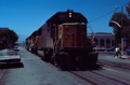 SP SD7R 1508 and a GP9E come around the corner in front of the Santa Fe's Fullerton depot on the UP's Anaheim Branch in 1980. This location is where the overhead bridge is at the depot today. While a segment of the UP's branch remains between Basta and Fullerton, it is now a car storage track connected to the Santa Fe's south main track. |