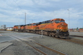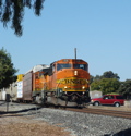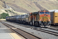 BNSF 7215, leading CP 8951 and BNSF 7804, meets BNSF 5131 South at Magunden, CA. |