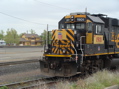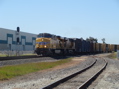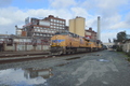 A westbound train rolls past Jorgensen Steel with 8506-2637-3803-4440. |