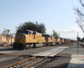 A southbound freight with 2683-2598-4527 and 7714 as a DPU rolls through Earlimart, CA. |