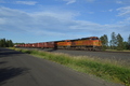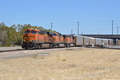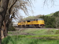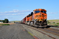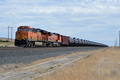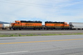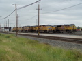 Another empty grain train with 4404-7200-6922-7695 in the lead. Note that 7695 is the Yellow Swoosh engine with its unique BNSF logo. |