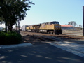 The DPU on UP 6840 West, UP 5539, just comes into view as Amtrak 6 races by on the other main. |