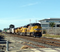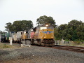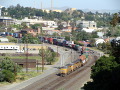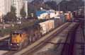 An eastbound at 85th Avenue in East Oakland is headed for San Jose with SD40R 7352, SD45T-2 9323, and UP SD40-2 3766. |