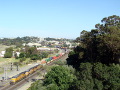 Shortly after that, two tunnel motors (8341 and 9247) drag an OASJY (Oakland-San Jose) out of the Homestead with 71 cars. |