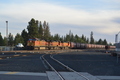 A long 123 platform stack train with 8066-2576-5147 and 2 5200's at the rear rolls through Soda Springs, CA on the long descent through the Sierra. |