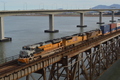 DPU 4020-7429 idle across the Benicia Bridge as the UP 1989 heads down the north approach. |