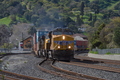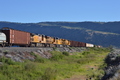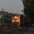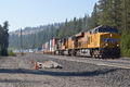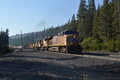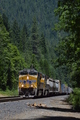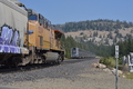 A mixed power consist of 6840-3803-5272-1628-5266 and DPU 5539 has a westbound train well under control at Soda Springs. |