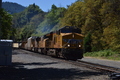 Three GE's, 7858-5294-4237 with two more DPU's hold back a southbound at the big curve at Warren. |