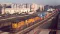 Recently mated SP road slug set 7940-1600-7941 has cut off its train at West Oakland and has come out of the Homestead end of the yard to go back to the West Oakland diesel shop. The GP40-2's had been running in pairs since their delivery waiting for the Morrison-Knudsen rebuilt slugs (from U25B's). |